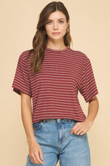 -Made in the USA-Crewneck-Stretch-Short Sleeves-Model is wearing size S