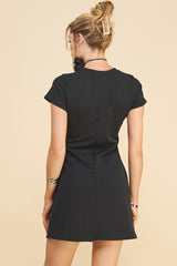 Ready to go out and feel comfortable? Our Renee dress is the perfect pick with its super-stretchy fabric, classic short length, and flattering tie front. Get ready to show off your unique style!