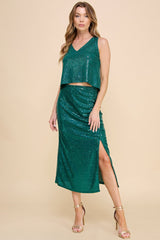 The name says it all, this eye-catching skirt exudes radiance and charm. Perfectly paired with its matching top or if you want to keep is casual, pair this top with a basic top and a cute jacket. A little shimmer goes a long way!