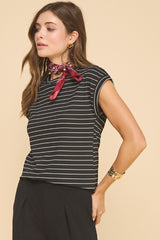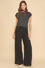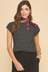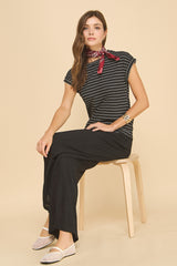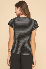 -Made in the USA-Rib Stripe-Cuffed tee-Crewneck-Model is wearing size S