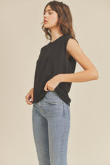 Hot for the season, this muscle tee has a splash of femininity, instantly bringing out those cool-girl/laid-back vibes.