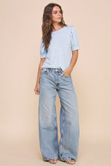 Relaxed fit, crew neck, and the cutest pleated puffy sleeves, this t-shirt exudes romance in the details. Feeling casual, wear this shirt with some jeans and sneakers, want to dress it up, then do so with some suit pants and your favorite heels.