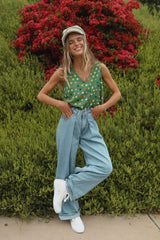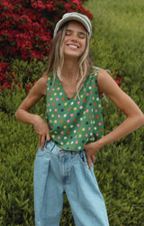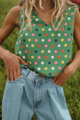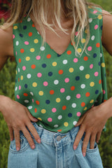 The colorful Polkadot V Neck Top is the perfect way to add some fun and color to your wardrobe. This classic cut top features a v-neckline, tank top silhouette, and vibrant polka dot print. The subtle polka dot print allows you to easily pair with any outfit for a unique touch.