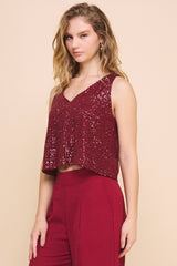 With shimmery and delicate sequins, this eye-catching top is ready to be worn on your next rendezvous! Makes for perfect pairing for jeans or dressier shorts, add a layer of your favorite blazer on those cooler nights.