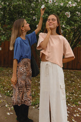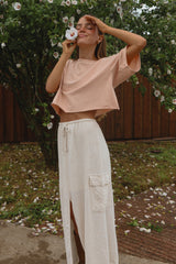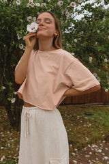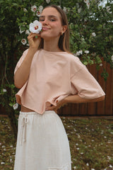 Everyone needs a go-to T-shirt – and that T-shirt is Zera! With its stylish design and comfortable fit, youll want to reach for it again and again. Made from breathable cotton with a hint of spandex for stretch, you can move without fear of restrictions. The raw edge detailing adds an extra touch of style. Plus the loose fit gives more breathing room and provides plenty of movement while keeping the look tailored. Whether youre lounging in your backyard or running errands around town, Zera will have you looking great every time!
